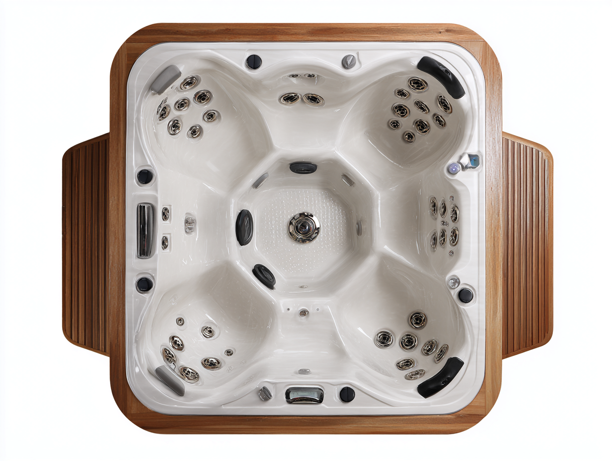 Bain à remous 4 places bois-acrylique 210x210x92 cm - bois/blanc - design moderne